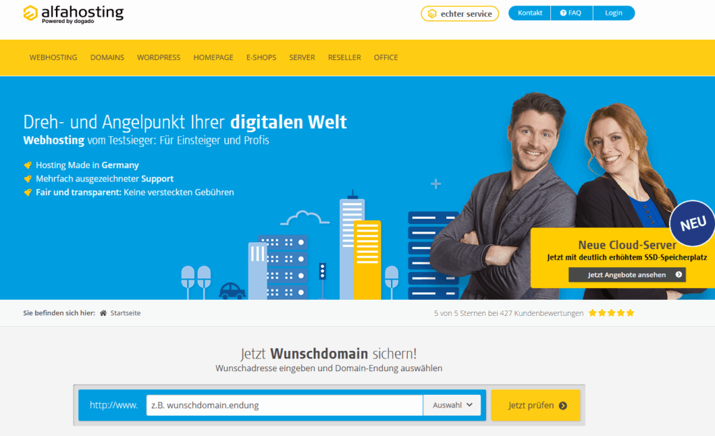 Alfahosting ist ein 1999 gegründeter deutscher Hosting- und Domain-Anbieter, der für seine günstigen Preise und zuverlässigen Dienste bekannt ist. Das Unternehmen bietet Domains, Webhosting und E-Mail-Lösungen mit Schwerpunkt auf Preis-Leistungs-Verhältnis und einer in Deutschland ansässigen Infrastruktur. Es richtet sich an Privatpersonen und kleine Unternehmen, die nach kostengünstigen Optionen suchen, ohne dabei Kompromisse bei der DSGVO-Konformität oder dem lokalen Support einzugehen.
