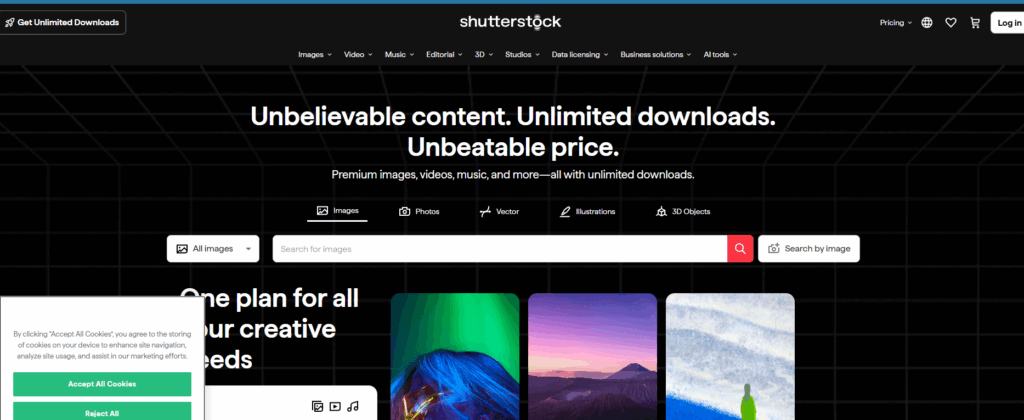 - Über 750 Millionen Assets, darunter Fotos, Vektorgrafiken, Videos und Musik zu allen Themen